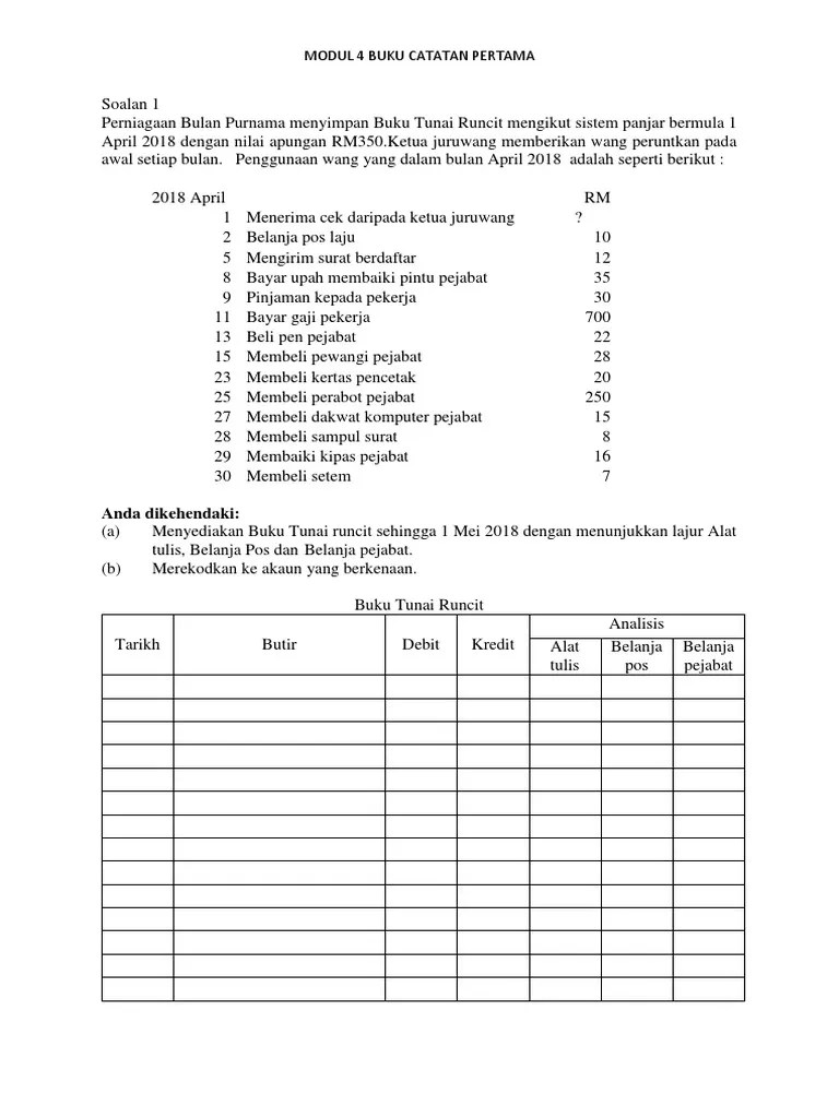 Tunai buku besar pembantu buku catatan baucer tunai contoh kawalan tunai contoh nota tunai buku books buku tunai prinsip perakaunan buku panjar contoh resit contoh baucer bayaran tunai buku tunai perkongsian buku lejer contoh buku kas harian baucar buku keluar masuk contoh. Segala urus niaga yang melibatkan tunai runcit akan direkodkan dalam buku tunai runcit. • pegawai yang memeriksa buku tunai tersebut dikehendaki menandatangani buku itu pada tarikh pemeriksaan dijalankan. Tulis20x0 rm rmmac related posts to contoh soalan buku tunai runcit tingkatan 4 contoh soalan buku tunai runcit tingkatan 4 2019 07 30t13:03:00 07:00 rating: Baucar pembayaran buku tunai (pembayaran tunai/bank) baucar tunai runcit buku tunai runcit (pembayaran tunai). Cashbook1 payment recognise and name the related documents 3. Bak 102 buku tunai1 pembayaran 2. Tengok belah mana yang jumlah nyer lebih besar. Pembayaran tunai dan non tunaideskripsi lengkap. Peniaga akan menyimpan dokumen salinan dan dokumen asal akan diberikan kepada penerima. Contoh semakan no baucar bpn. Contoh, anda telah membuat cek dan pv kepada pembekal, namun begitu cek tersebut masih disimpan didalam laci staf dipejabat. Baucar bayaran, invois dan lain lain dokumen sokongan tidak dicop dengan perkataan telah bayar selepas pembayaran disempurnakan.