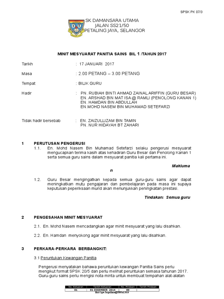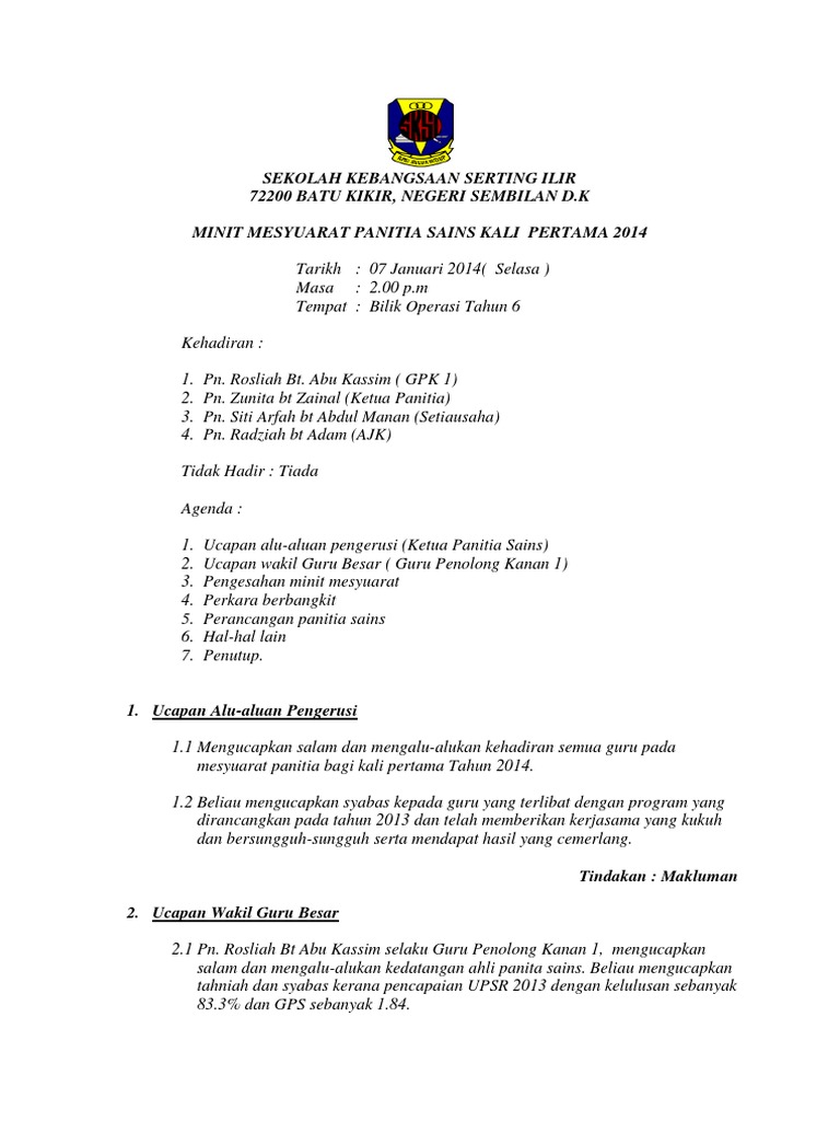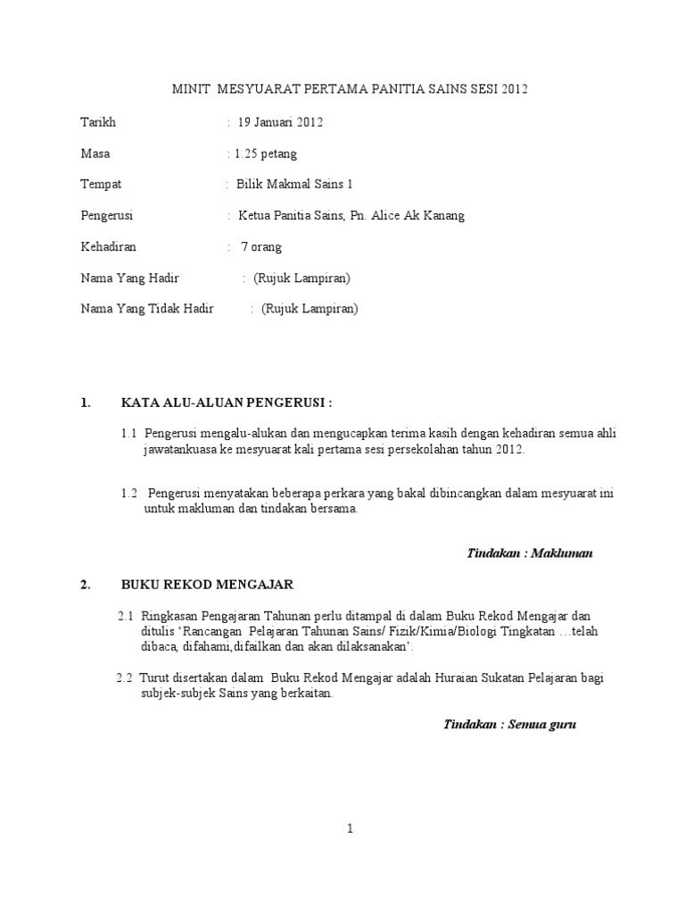 Related : Minit Mesyuarat Panitia Sains - 49073081 minit-mesyuarat-panitia-sains-kali-pertama-2011 : Maybe you would like to learn more about one of these?.