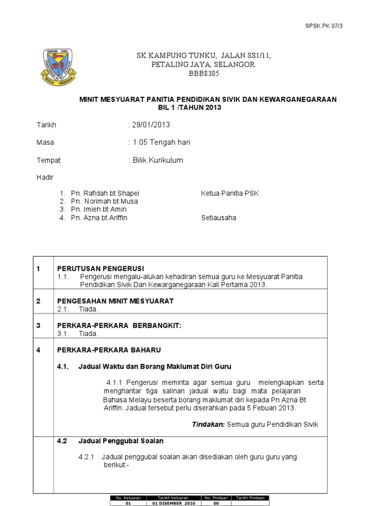 Minit Mesyuarat Panitia Pjk k3 from imgv2-1-f.scribdassets.com We did not find results for: Maybe you would like to learn more about one of these? Check spelling or type a new query.